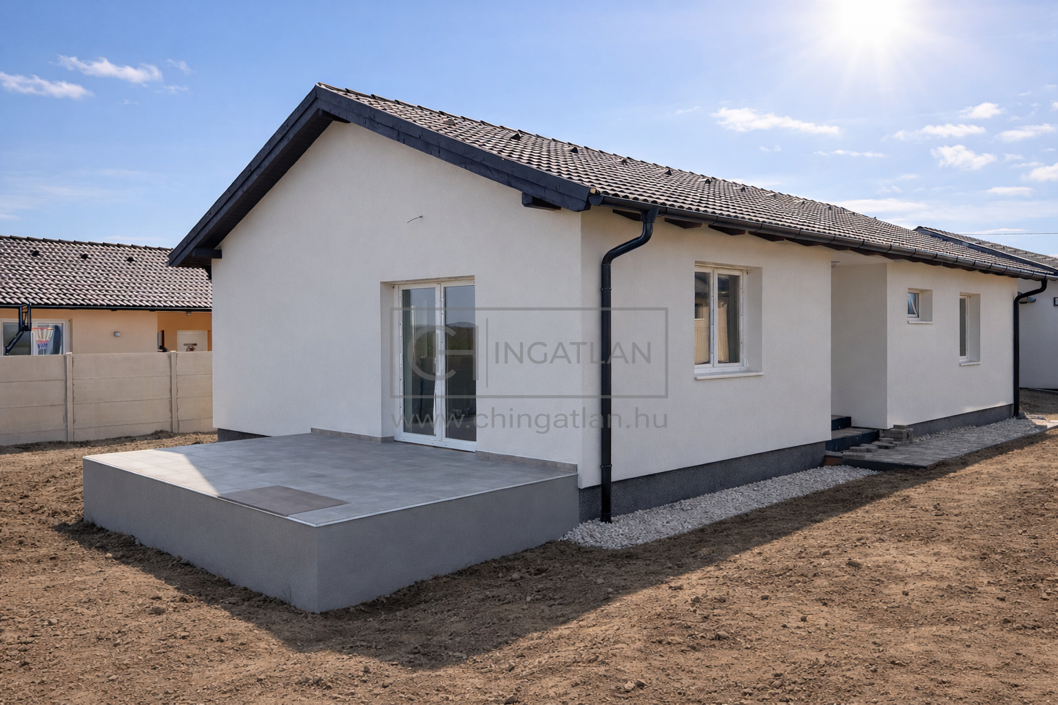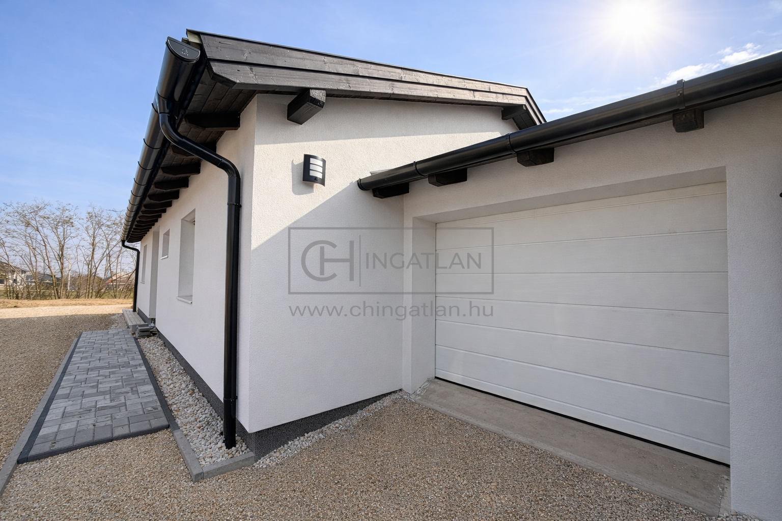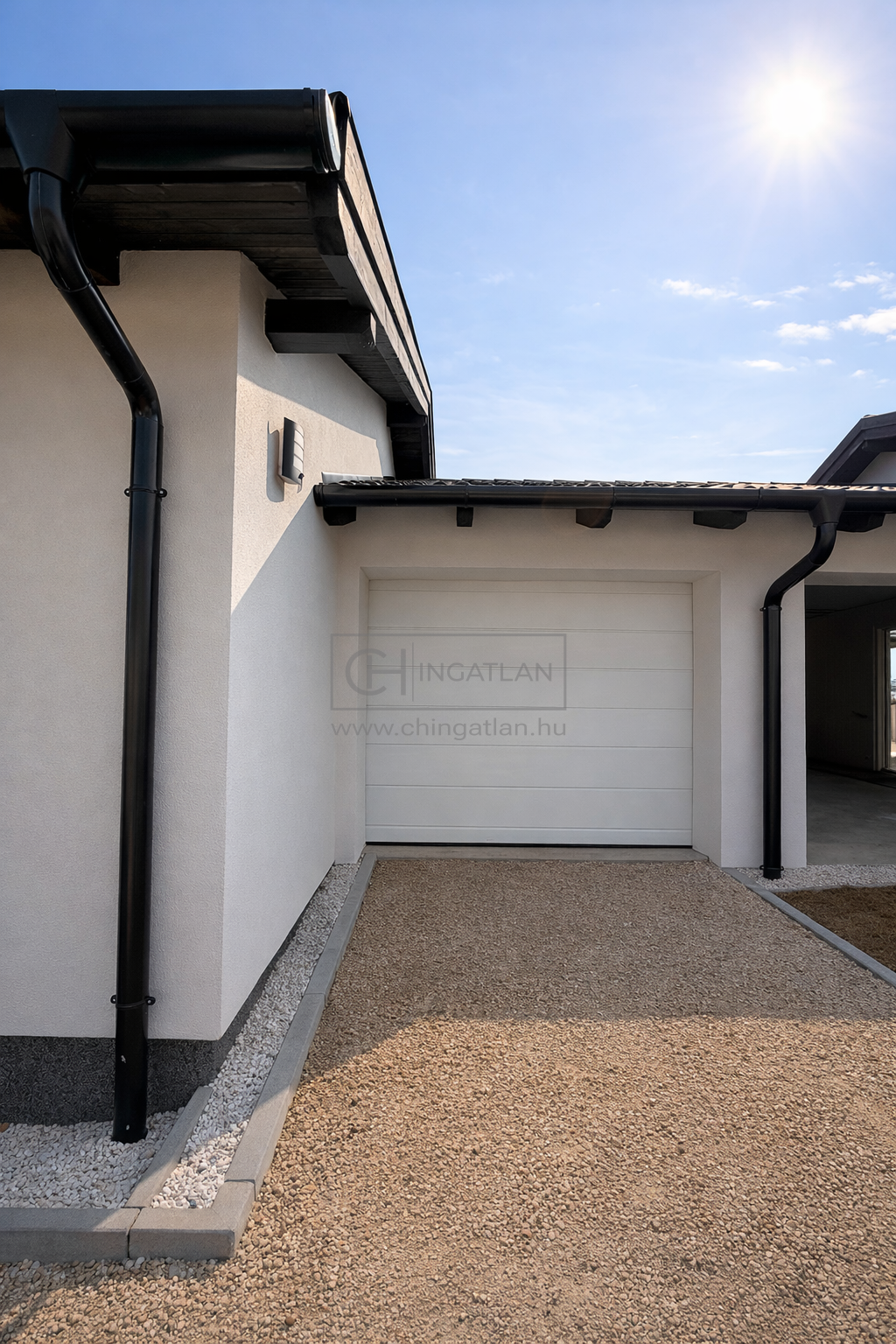 - Garázs: simított beton, motoros kapu előkészítés, padlófűtés