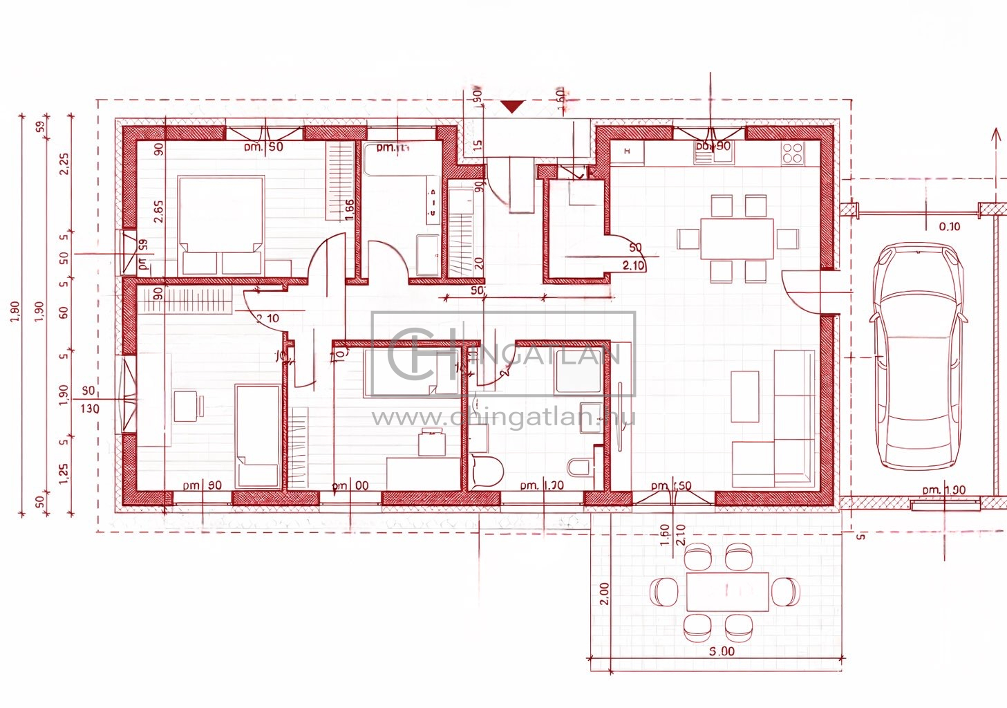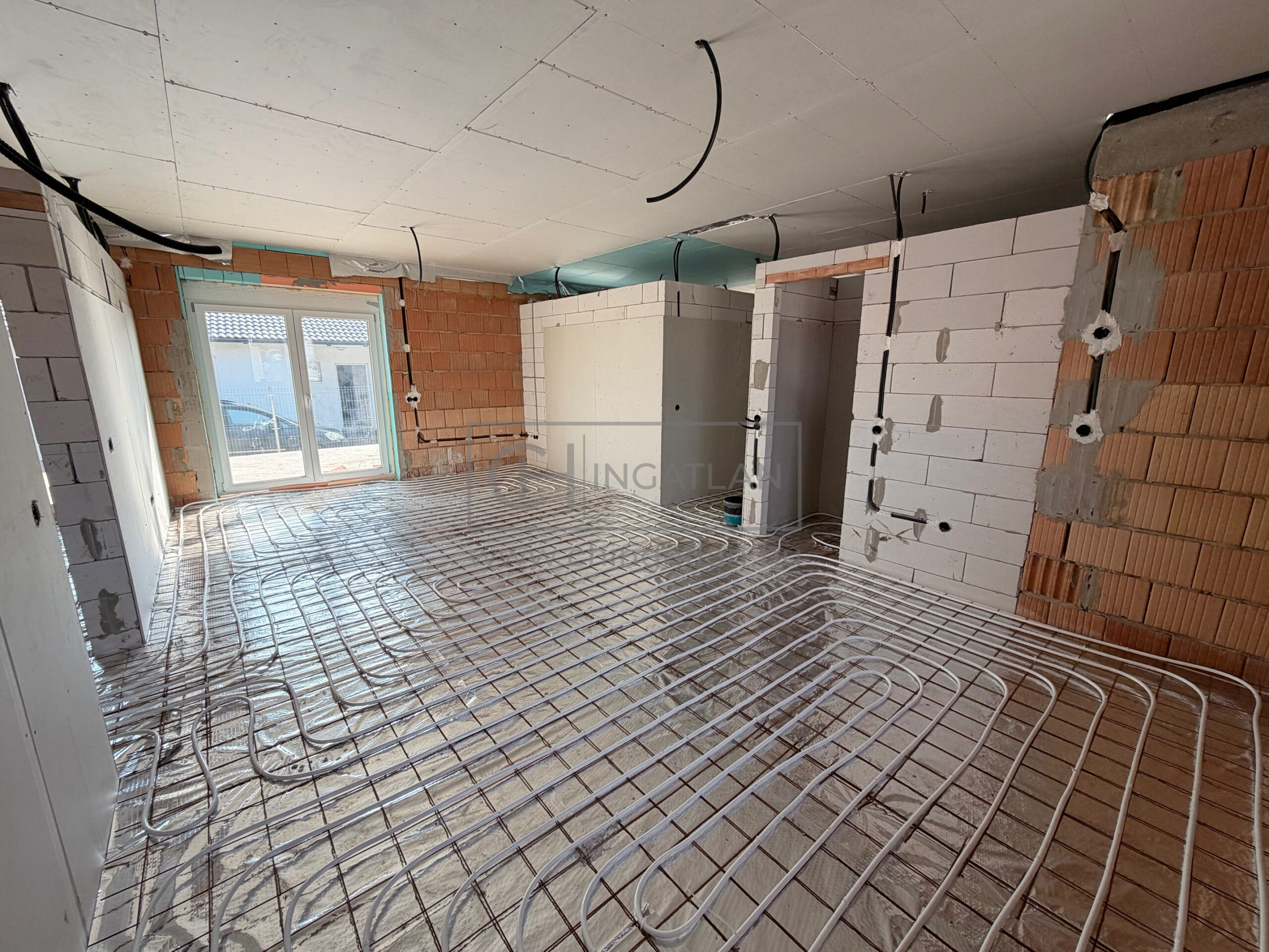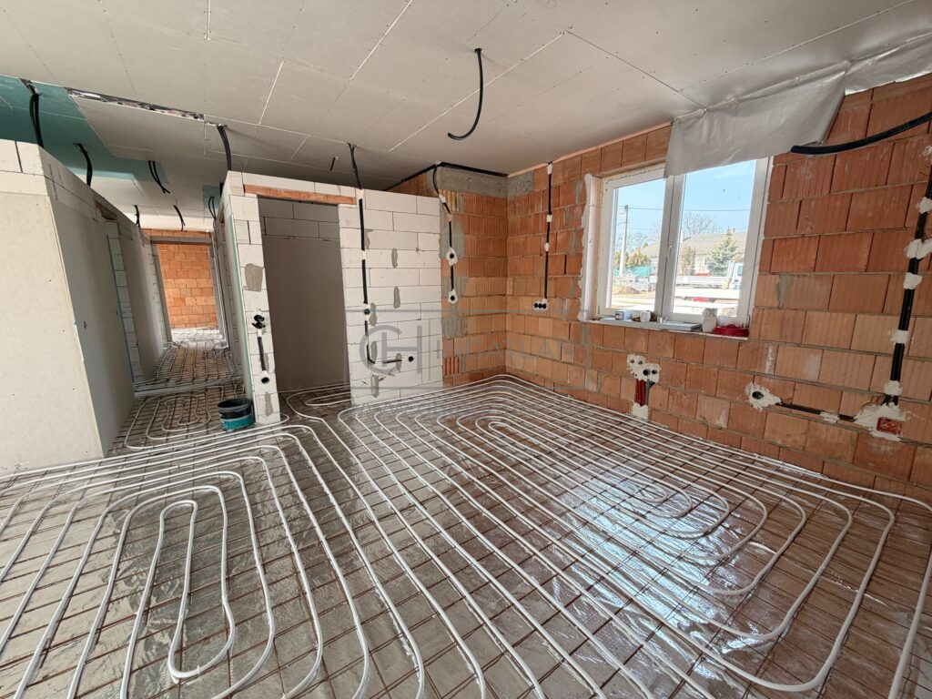 - Garázs: simított beton, motoros kapu előkészítés, padlófűtés