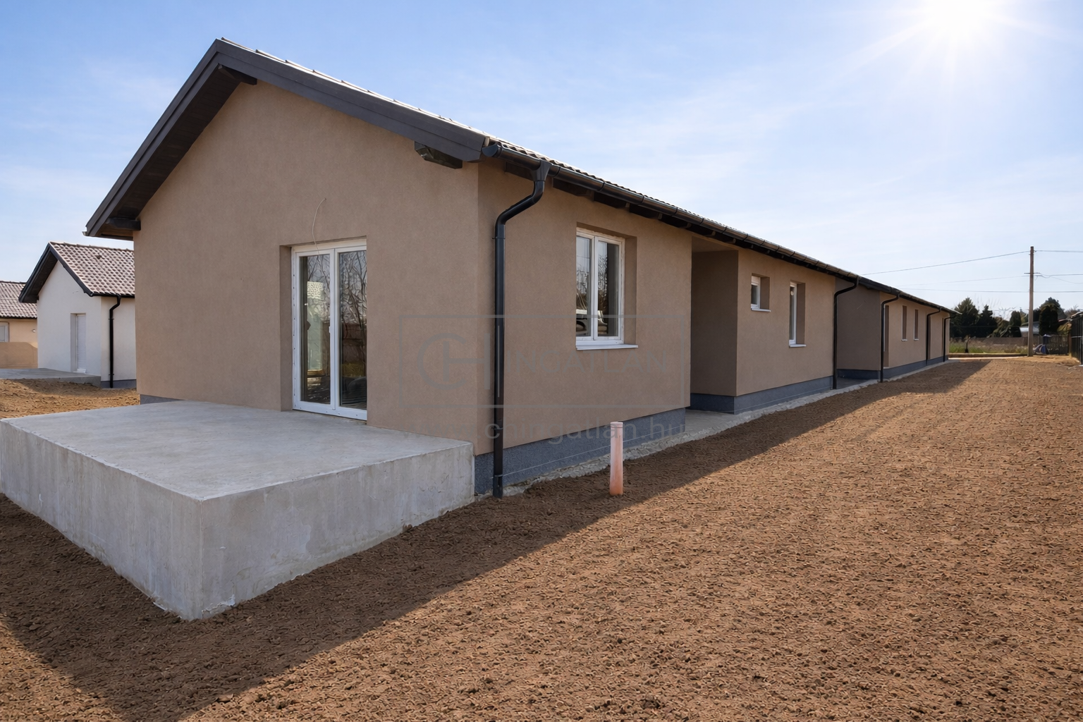 A 100-120 m²-es házak saját, 450-550 m²-es telken helyezkednek el, melyből ~350 m² privát kert – bőven elég tér pihenésre, játszótérre, teraszra, kerti életre.